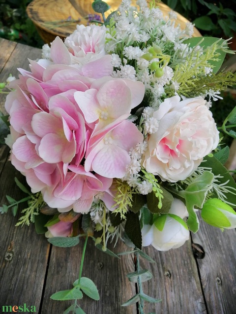 Rózsaszín hortenziás selyemvirág csokor