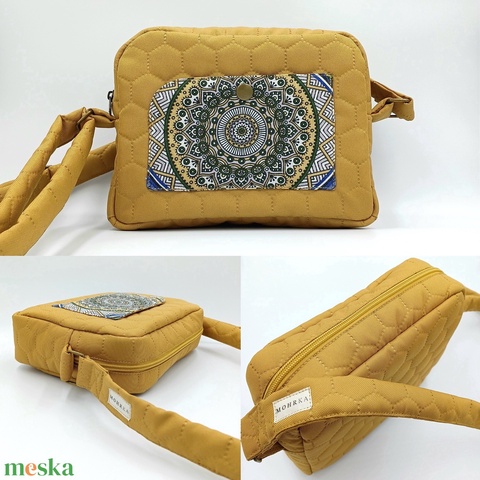 Okkersárga színű, mandalás válltáska vízálló textilből