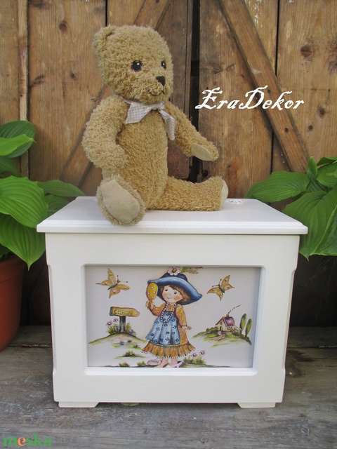 gyerekszoba bútorok, romantikus antikolt festéssel készült fa ajándéktárgyak a provence-i stílus jegyében