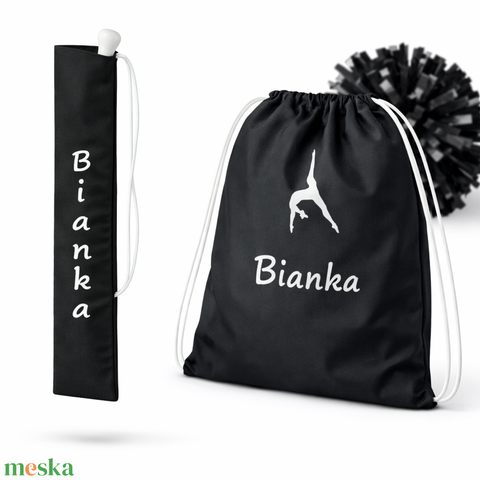 Mazsorett bottartó és pompom táska szett (fekete) - névvel és logóval is kérhető