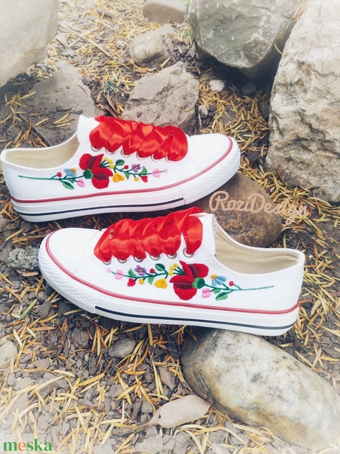Magyaros, kalocsai virágokkal kézzel hímzett tornacipő
