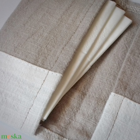 Utazós zsebkendőtartó tok - lenvászon fehér, bézs színben