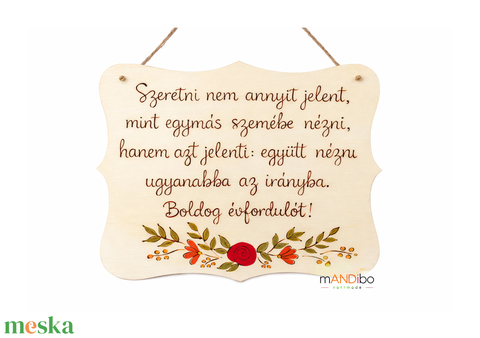 Virágos mintás pirogravírozott kép eljegyzésre, esküvőre, évfordulóra.