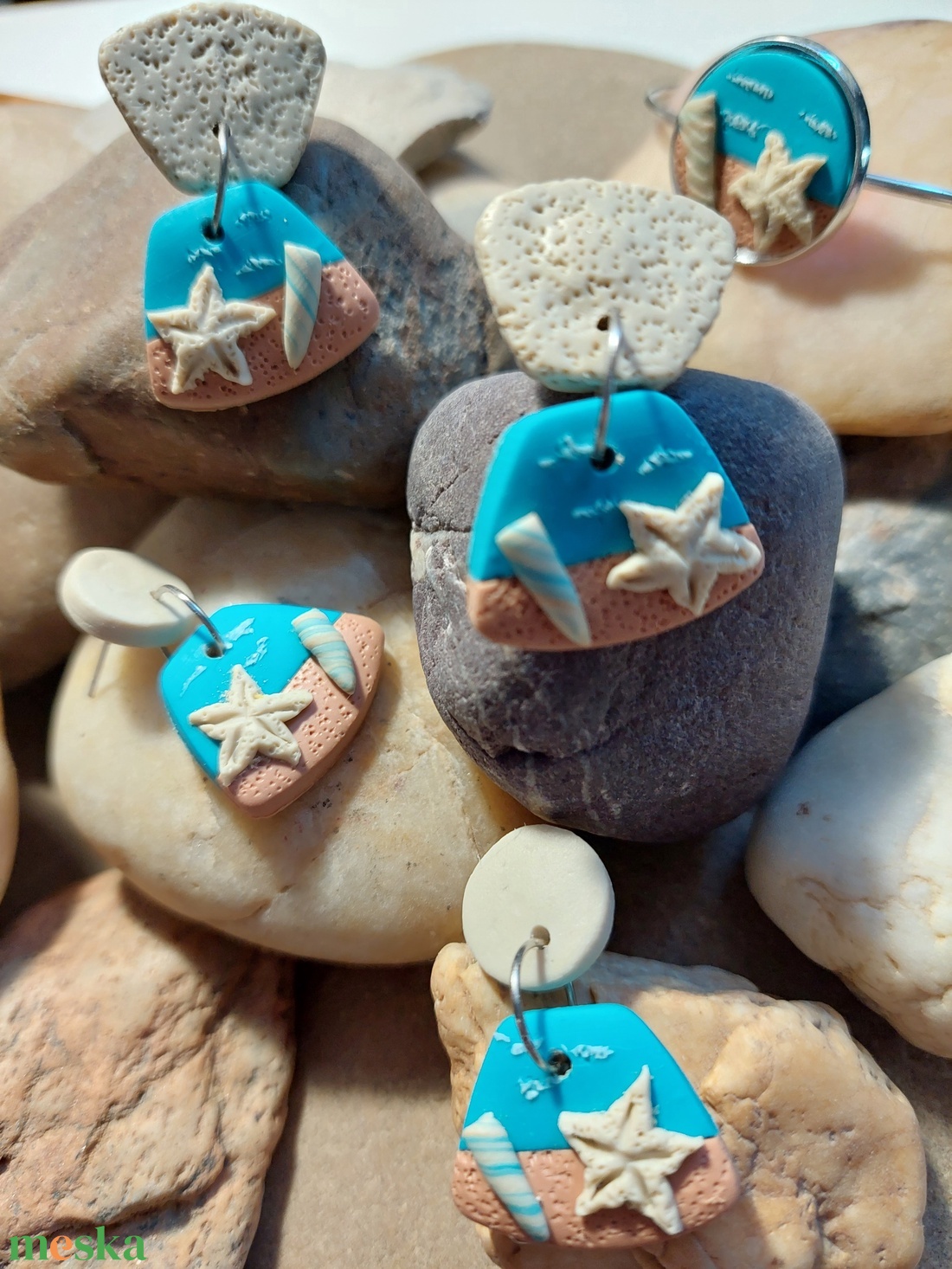 Beach Theme gyurma medálos fülbevaló tengerparti nyaraláshoz