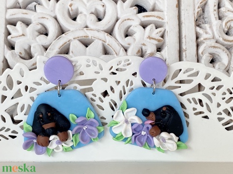 Tacsik fehér-lila virágokkal-fimo gyurma fülbevaló