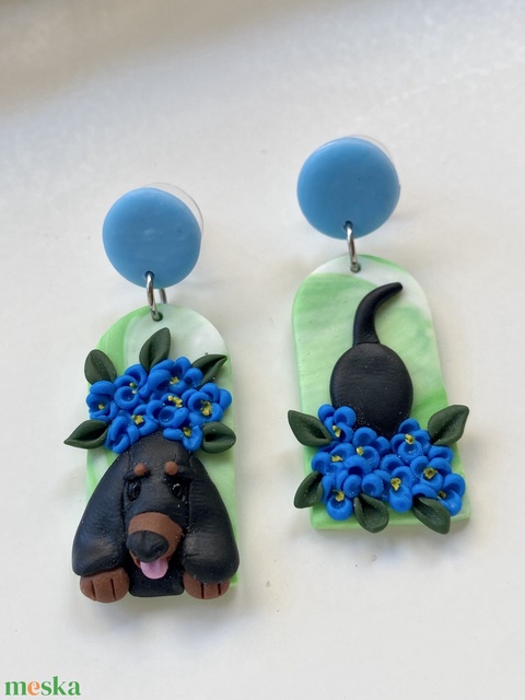 Tacsik kék nefelejcs virágokkal-fimo gyurma fülbevaló