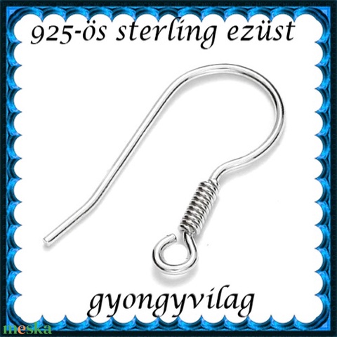 925-ös sterling ezüst ékszerkellék: fülbevalóalap akasztós EFK A 68