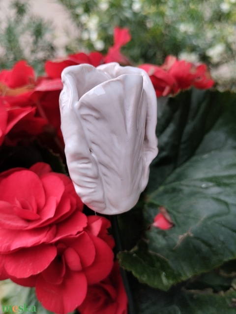 - Anyaga: fehér agyag, huzal, ragasztó, piros máz