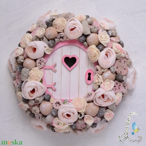 - Anyaga: szalma koszorú, száraz termések, selyemvirágok, tündérajtó