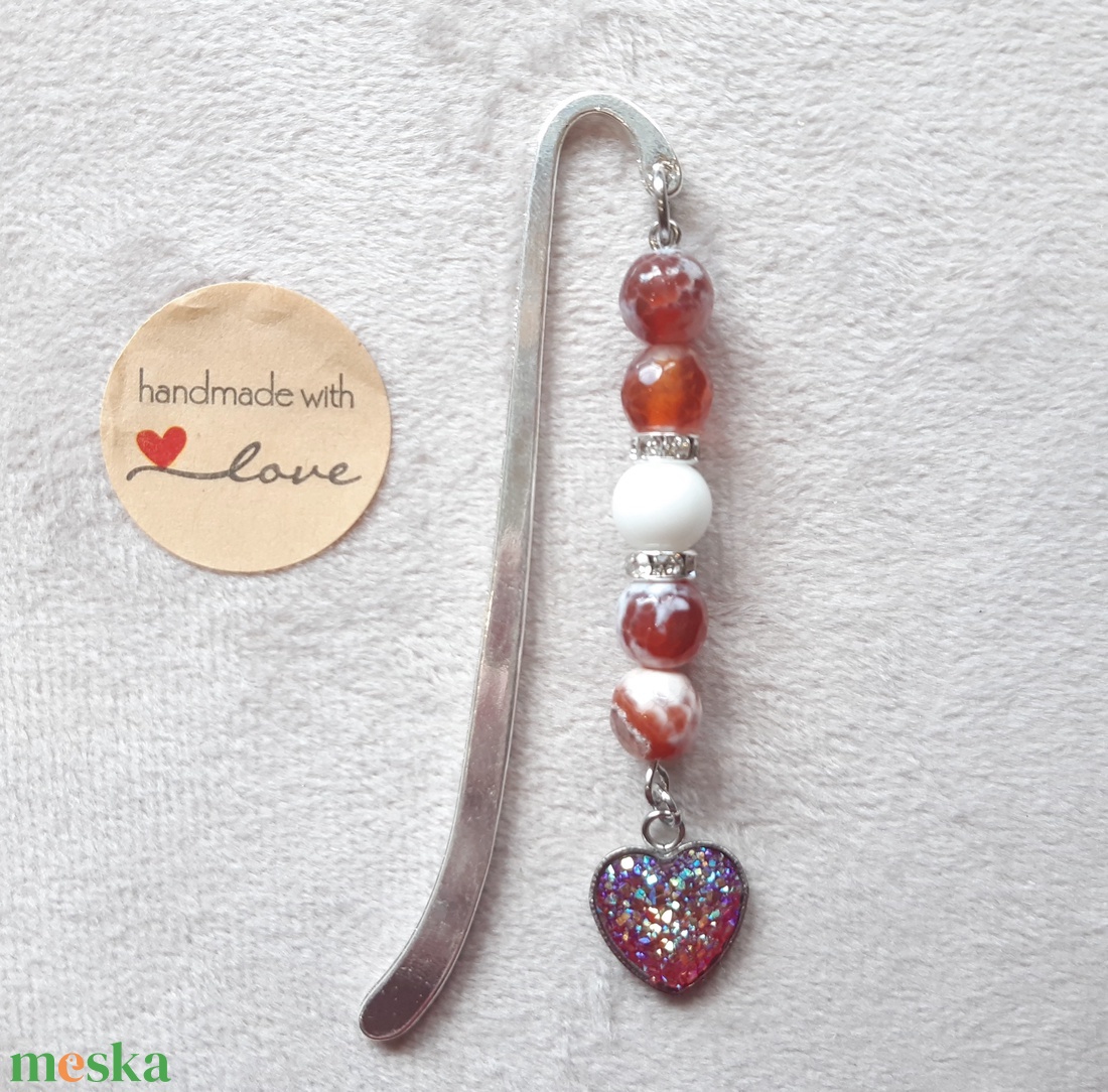 Csillogó szíves ásvány könyvjelző, Karneol - Ónix ásványszállal