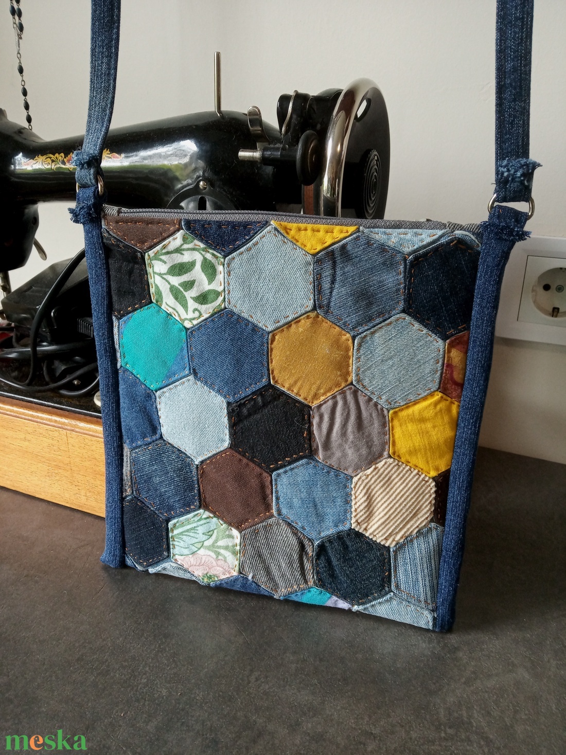 Kézi tűzéssel díszített, átvetős (crossbody) táska