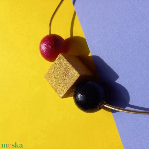 Fa bogyós absztrakt nyaklánc alakzat fekete, arany, fukszia színben