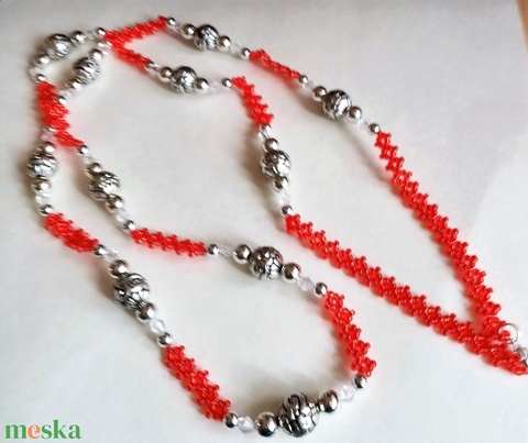 CSIPKEMINTÁS HOSSZÚ PIROS NYAKLÁNC EZÜST GOLYÓKKAL