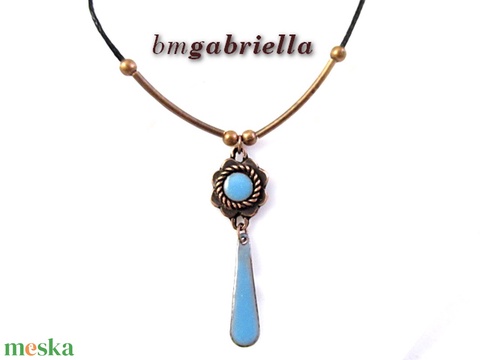 Virág nyaklánc világoskék tűzzománc betéttel - egyedi tervezésű kézműves ékszer