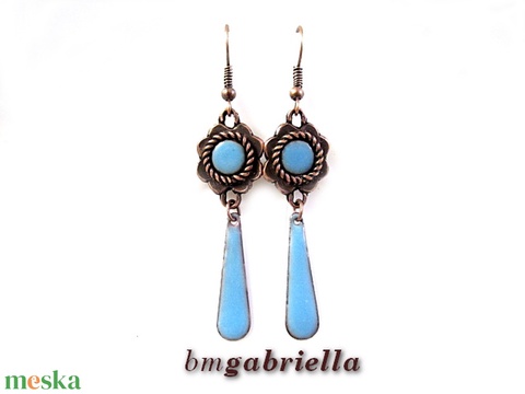 Virág fülbevaló világoskék tűzzománc betéttel