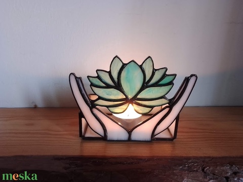 LÓTUSZ A KÉZBEN tiffany mécsestartó.