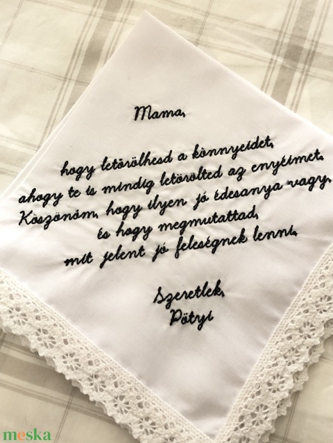 Hímzett, egyedi keszkenő, szülőköszöntő