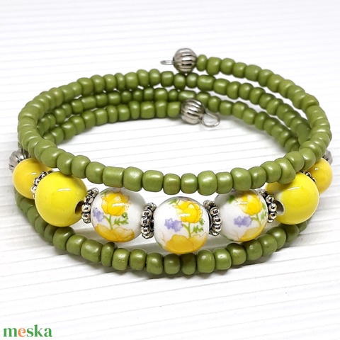 Tulipáncsokor porcelán/üveg gyöngy karkötő, gyöngyékszer