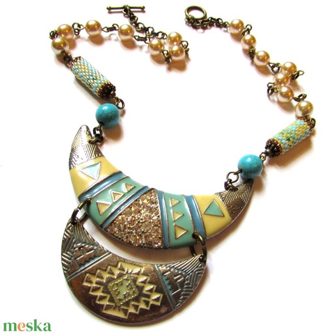 antik medál, üveg gyöngy, japán gyöngy, szerelékek