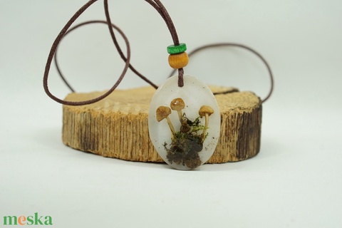 szerelék, műgyanta, szárított gomba, fa gyöngy, moha