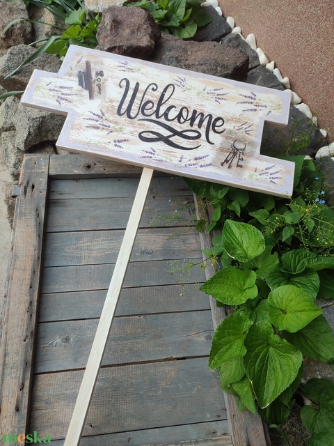 Nagyméretű Welcome-tábla, levendulával és egyedi mintával. :-)