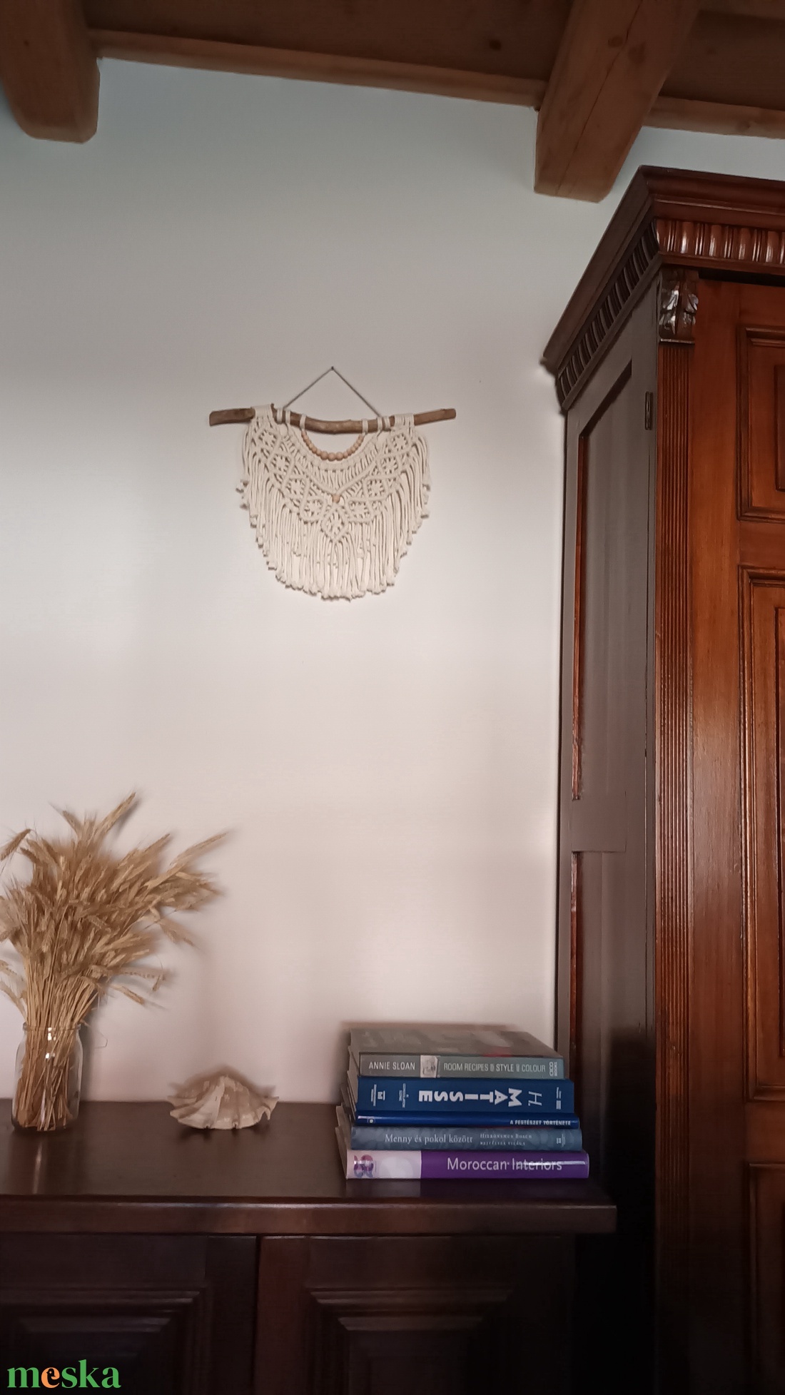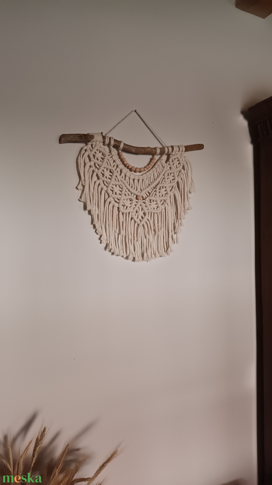 Nyers színű makramé falikép