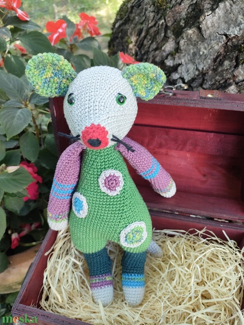 Zöld egér- Horgolt figura