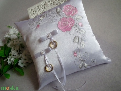Lizi esküvői gyűrűpárna - szürke, rózsaszín