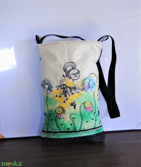 Tavirózsa- sárga-zöld színárnyalatban táska, válltáska