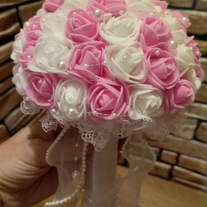 Fehèr-rózsaszín menyasszonyi csokor vagy dobócsokor gyöngyfűzèrrel