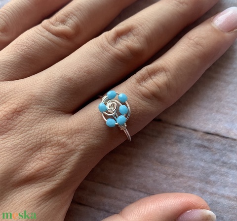 Ezüstözött rèz, kék gyöngyös gyűrű