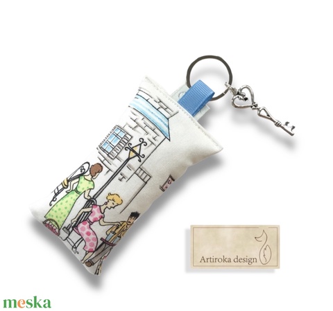 Párizsi vakáció - prémium pamut kulcstartó vintage kulcs medállal - Artiroka design