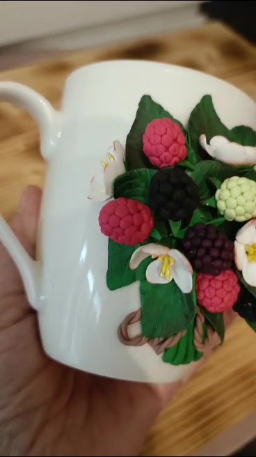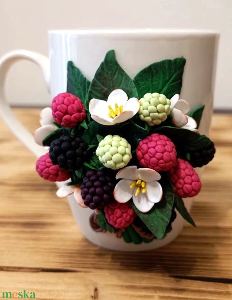 Bögre rajzzal, kézzel készített modellezéssel. Csokor bogyók