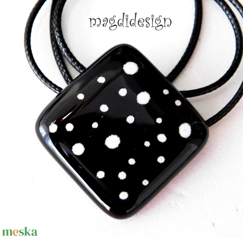 Fekete fehér pöttyös kocka üvegékszer nyaklánc