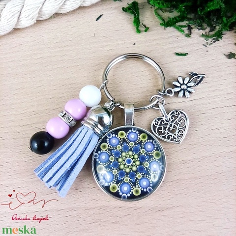 Lila mandala bojtos üveglencsés kulcstartó táskadísz
