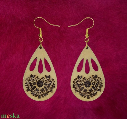 Antiallergén, kalocsai mintás, natúr fa fülbevaló