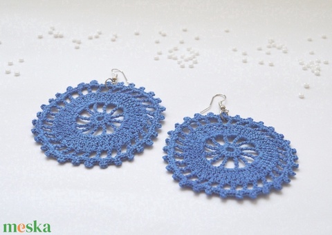 Horgolt, nagyobb méretű fülbevaló - kék