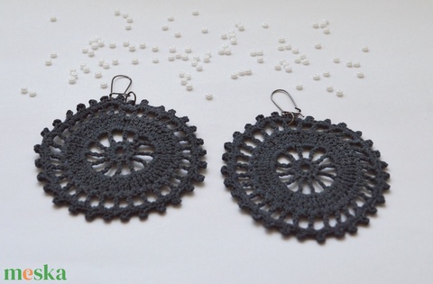 Horgolt, nagyobb méretű fülbevaló - szürke