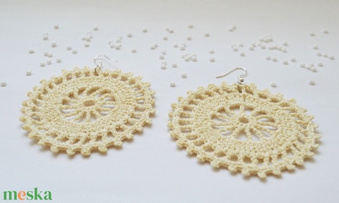 Horgolt, nagyobb méretű fülbevaló - vajszínű