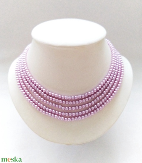 5 soros, orgonalila színű kaláris, 4 mm-es teklagyöngyből