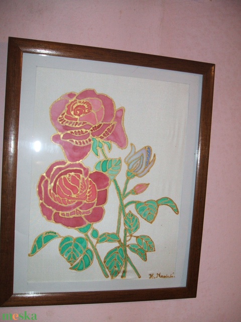 Hernyóselyem alapanyagra festett kép, egyedi készítés.