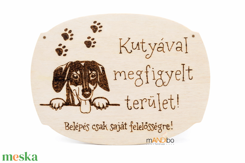Tacskó Kutyával megfigyelt terület - kopogtató - pirogravírozott képecske