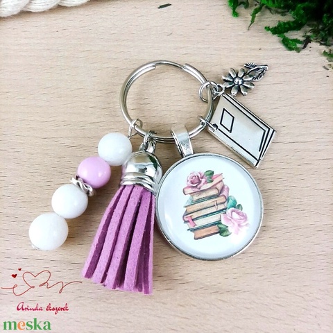 Olvasni jó lila bojtos üveglencsés kulcstartó táskadísz
