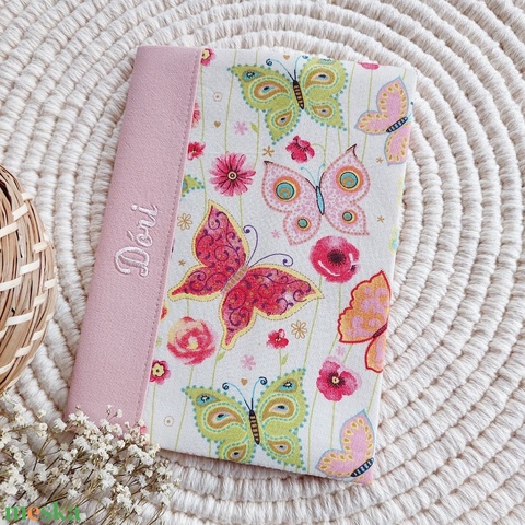 Egészségügyi kiskönyv borító névhímzéssel, színes pillangók, LuannaBaby