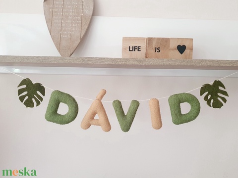 Névfüzér, név felirat pálmalevéllel, szafari monstera levéllel