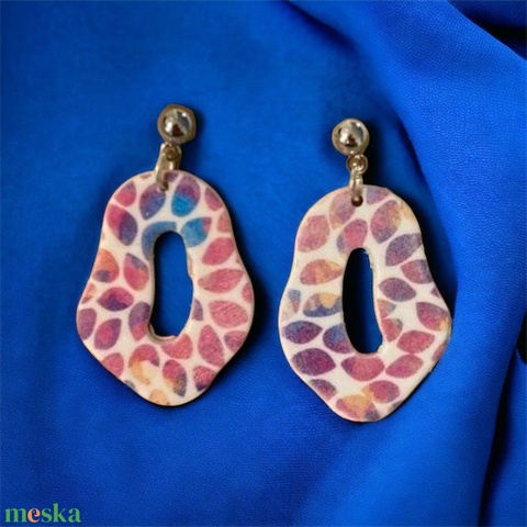 176. Sárgás-kékes-lilás színes virágszirmok kombinációja, különleges alakú fülbevaló