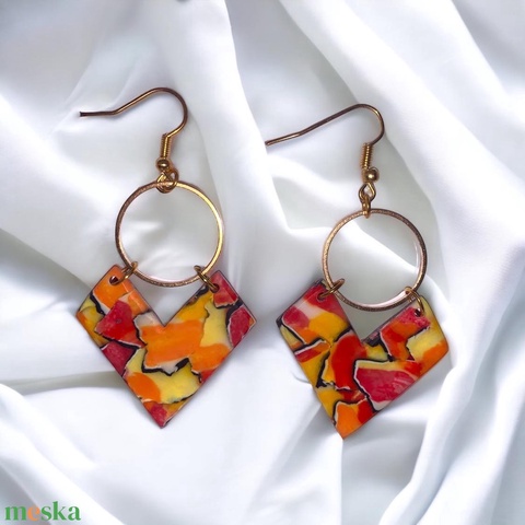 168. Sárga-piros-narancs tüzes különleges alakú fülbevaló