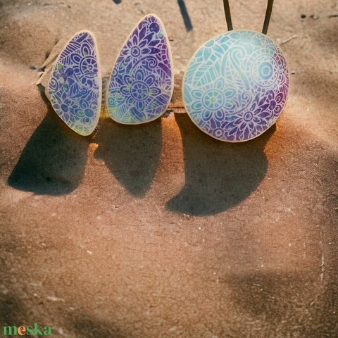 18. Színes mintás bedugós fülbevaló medállal