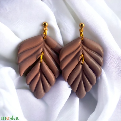 139. Világosbarna levélalakú kétrészes elegáns matt fülbevaló