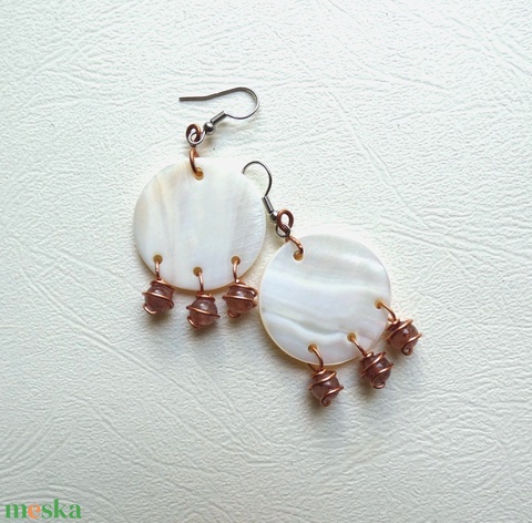 Fehér és Rózsaszín kagyló és ásvány fülbevaló
